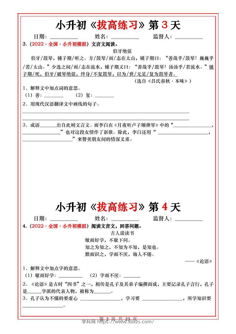小升初语文《拔高练习》20天_小张同学10个月前发布关注私信0428小升初语文《拔高练习》20天_此内容为付费资源,请付费后查看¥9.9黄金会员免费钻石会员免费立即购买您当前未登录!建议登陆后购买,可保存购买订单格式pdf页数23 页大小465.95 KB付费资源 ——预览已结束,还剩21页未读——开通会员后可免费下载高清完整文档 © 版权声明文章版权归作者所有,未经允许请勿转载。THE END小升初 喜欢就支持一下吧点赞8 分享QQ空间微博QQ好友海报分享复制链接收藏